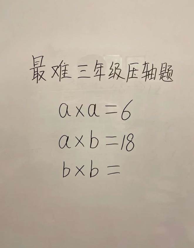 這道題目出現在知名律師林智群的臉書粉專上,他稱其為「最難的三年級壓軸題」。題目為:「axa=6,axb=18,bxb=?」。看似簡單的數學題卻暗藏玄機,林律師還笑稱「這個應該用心算5秒就可以解出來了吧!」引來一票網友挑戰自己的數學實力。