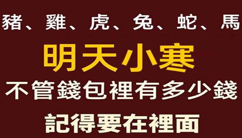 命理玄學界流傳一句話:「小寒錢包動一動,正月財神來敲門。」明日正值小寒節氣,天象顯示「水星臨財帛宮,六生肖遇橫財」。風水大師特別提醒:屬豬、雞、虎、兔、蛇、馬的朋友,無論錢包裡有一千還是一萬,務必在裡面放入「這樣東西」,第二天就有極高機率迎來意外之財,錯過再等三年!