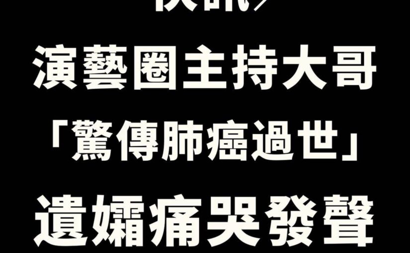 快訊/演藝圈主持大哥「驚傳肺癌過世」!遺孀痛哭發聲
