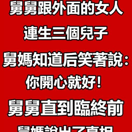 舅舅跟外面的女人連生三個兒子,舅媽知道後笑著說:你開心就好!舅舅直到臨終前,舅媽說出了真相.