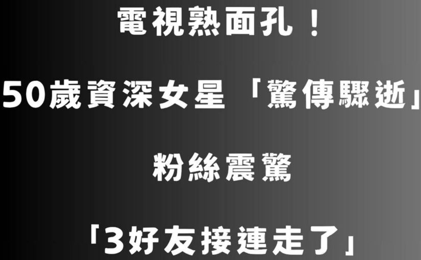 電視熟面孔!50歲資深女星「驚傳驟逝」 粉絲震驚「3好友接連走了」