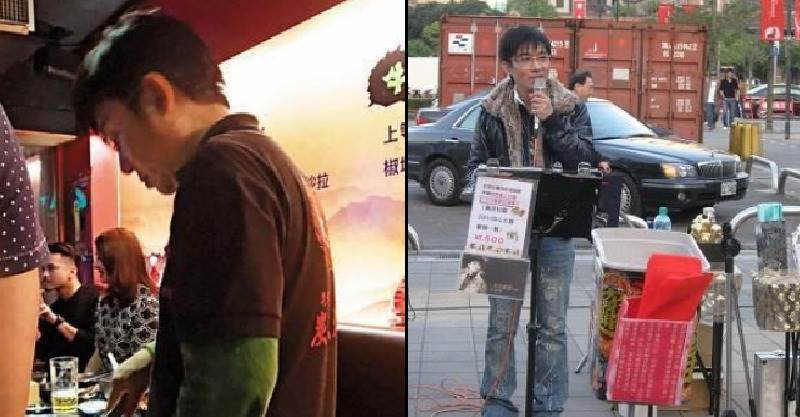可能因為生活壓力大,他的生活變得很落魄,甚至走上街頭賣唱,還順便賣自己的CD。可惜好景不長,他的生意惹來了地痞流氓的滋擾,曾被打到顴骨碎裂,之後不再賣唱。歌手的路走不下去,他只好做普通人,於是到一家烤肉店打工,一個小時的工資約為135元台幣。他說,每個周末都會去店裡兼職,穿著制服幫客人烤肉時,他還會隨興哼幾句,強調自己嗓子依然很好,寶刀未老。